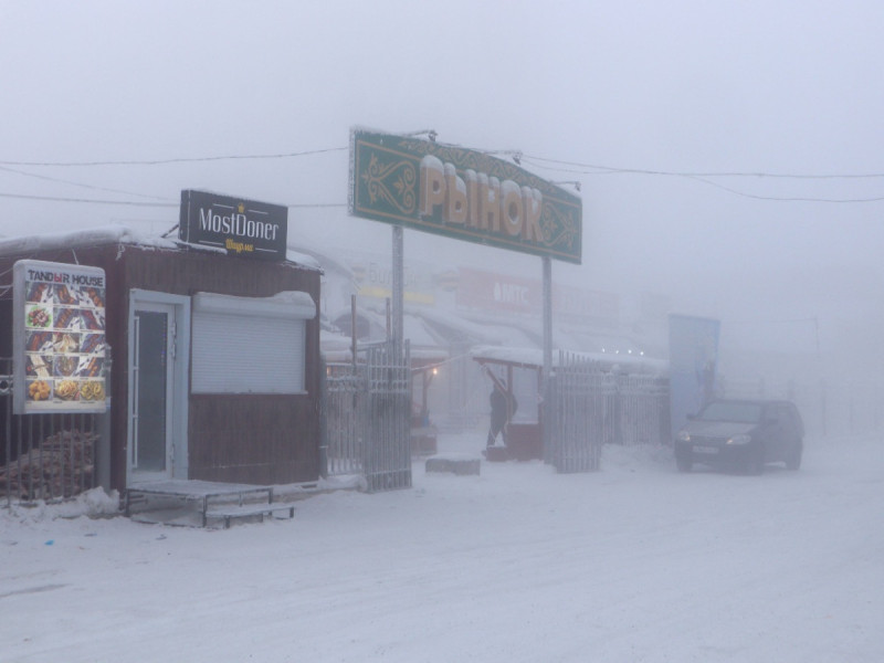 Otra residente, Nurgusun Starostina, que vende pescado congelado en un mercado, dijo que no había secretos especiales para hacer frente al frío. “Sólo hay que abrigarse en capas, como un repollo”.