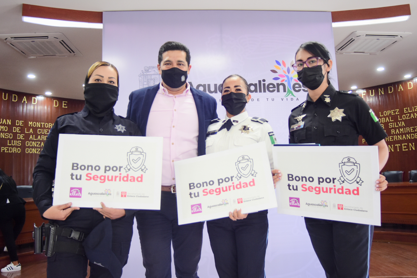 En esta ceremonia efectuada en Salón Cabildo de Palacio Municipal, externó un agradecimiento a los empresarios por esta conjunción de esfuerzos que respalda la labor de la corporación, la cual se ve reflejada en la confianza de la sociedad hacia sus elementos y que hace que Aguascalientes cuente con una de las policías más confiables, que diariamente con empatía y solidaridad da todo por la tranquilidad de las familias.