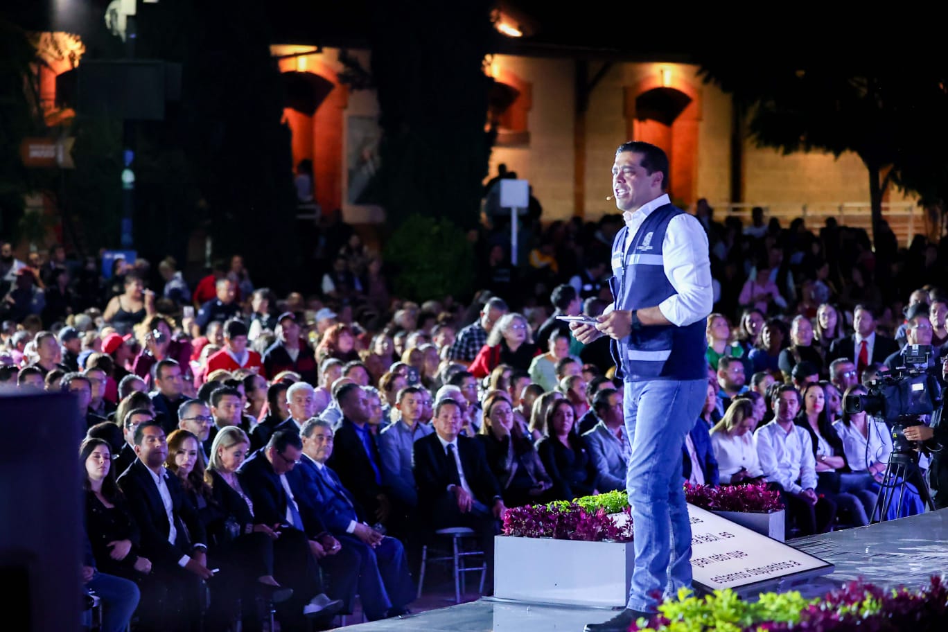 En la Plaza de las Tres Centurias y a través de la transmisión en redes sociales, garantizó que se redoblarán esfuerzos para cumplir las metas del Plan de Desarrollo Municipal 2021-2024 y que cada persona se sienta orgullosa de vivir en una de las mejores ciudades, y consolidarla como ejemplo por su seguridad, infraestructura de vanguardia, servicios públicos y calidad de vida.