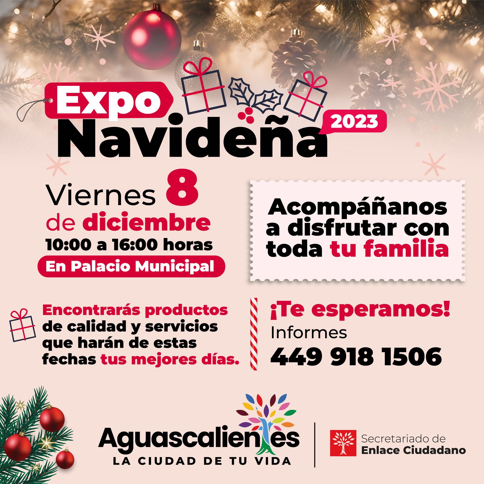 El Municipio de Aguascalientes presentó su Programa Navideño 2023 a través del cual se ofrecerán del 8 de diciembre al 7 de enero de 2024, diversas actividades para disfrutar en familia, como la decoración e iluminación navideña, concursos, exposiciones comerciales y el festival artístico – cultural.