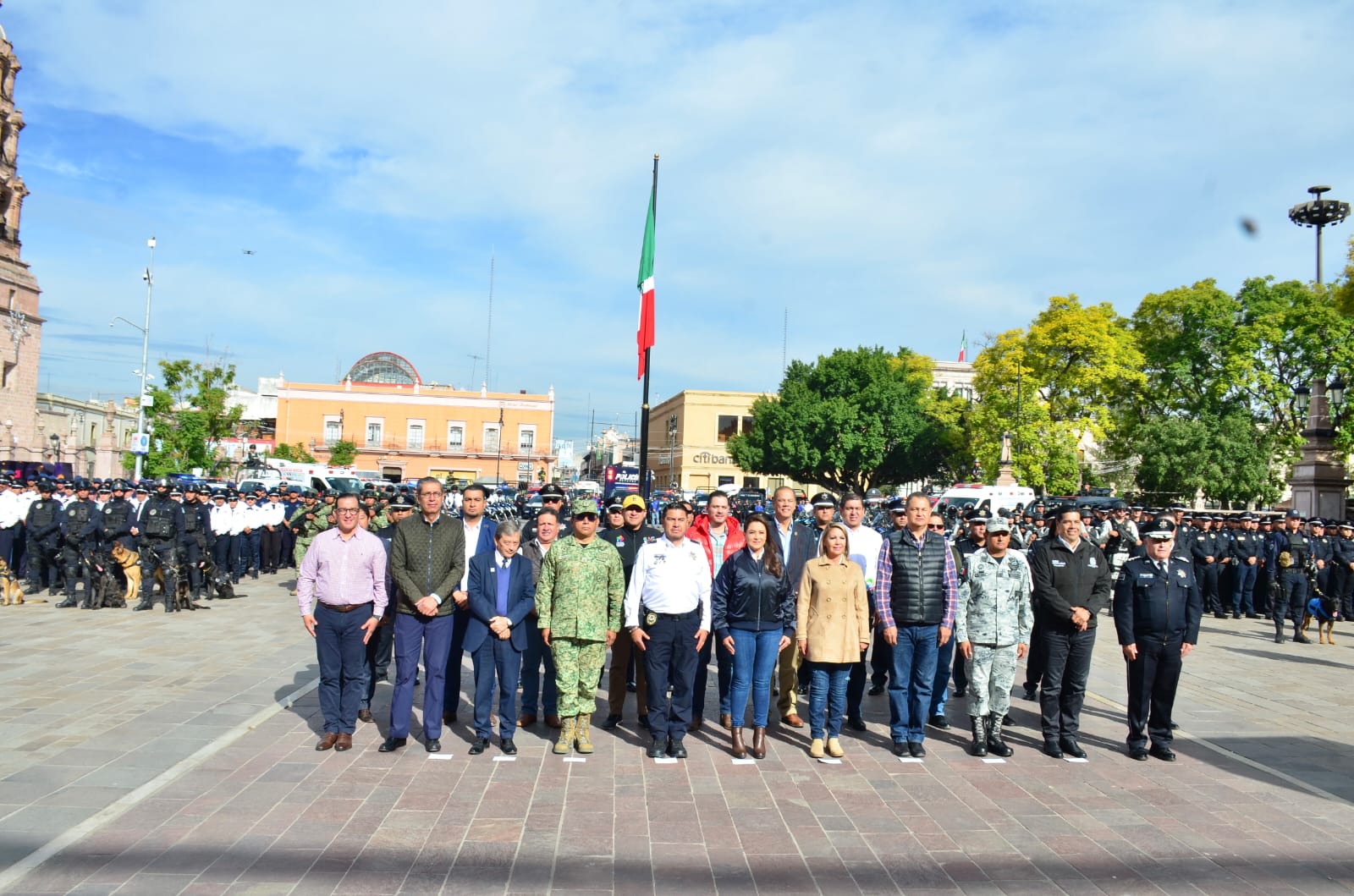 Por su parte, el secretario de Seguridad Pública del Estado, Manuel Alonso García, detalló que en este operativo participan la Policía Estatal, el Ejército mexicano, la Guardia Nacional, las Policías Municipales, la Fiscalía General del Estado, Protección Civil, Bomberos y Cuerpos de Emergencia; en su conjunto, mencionó, estas instituciones representan una fuerza de mil 900 efectivos, 719 unidades operativas, entre patrullas, motocicletas y ambulancias, además de dos helicópteros y 10 caballos.