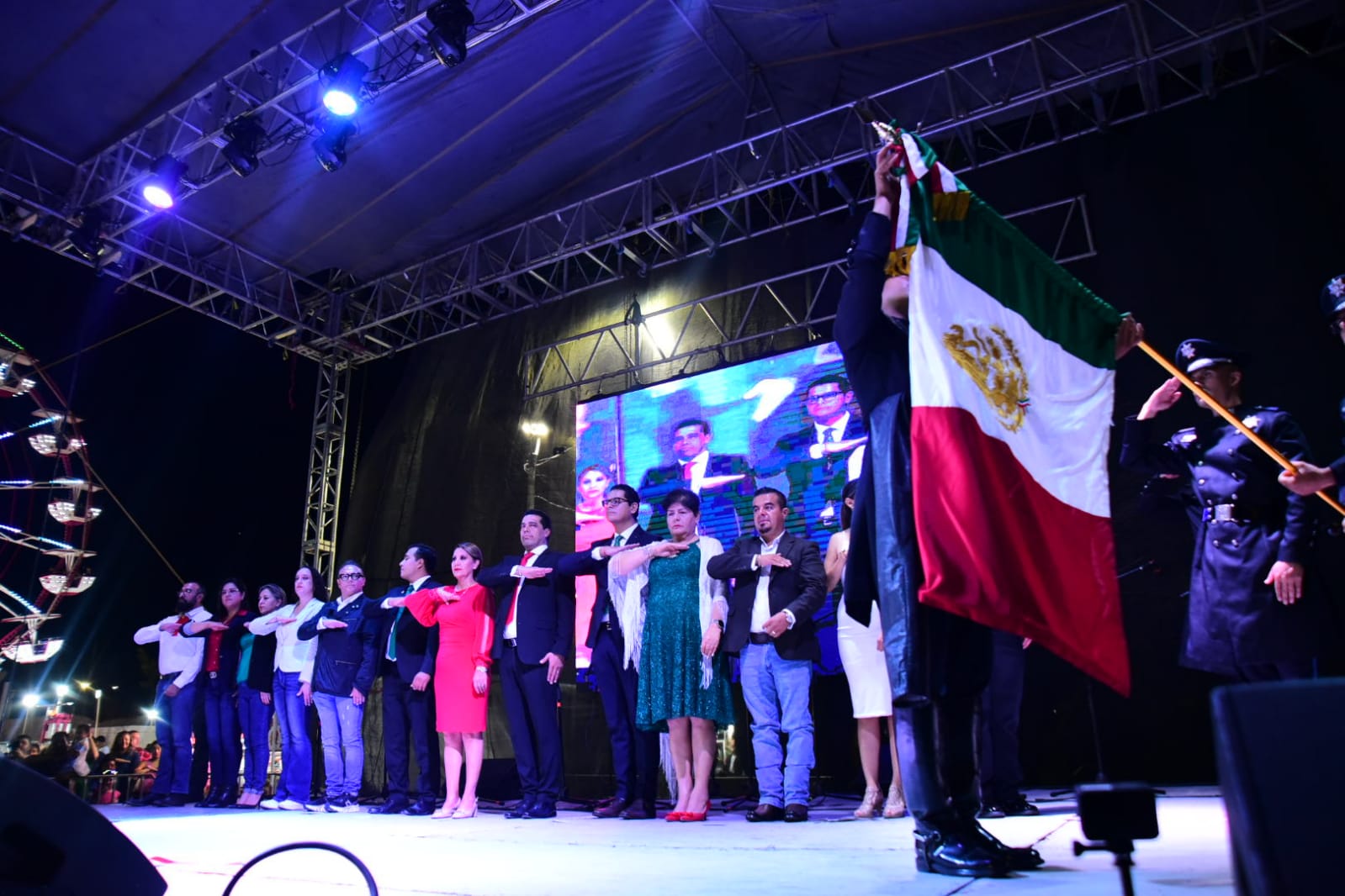En el evento celebrado en la explanada de la delegación Morelos tras rendir honores a la bandera, envió un mensaje de unidad a la ciudadanía y al grito de «Viva México», honró junto con decenas de familias la memoria de los héroes que hace 214 años lucharon por la patria y soberanía de esta gran nación.
