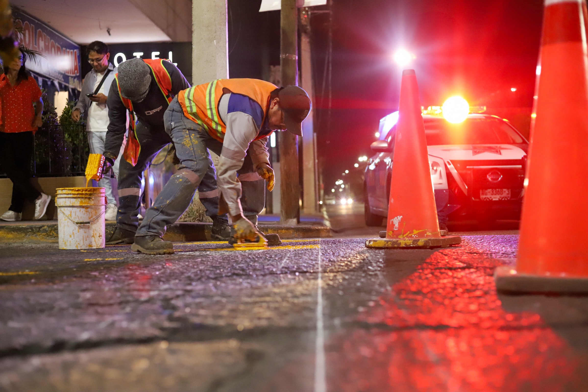 En los cruces de avenida Independencia con la calle Montes Himalaya, así como en el cruce con la calle María del Rosario Alcalá, la Secretaria de Obras Públicas Municipales (SOPMA), llevó a cabo trabajos nocturnos de mantenimiento en pintura vial.