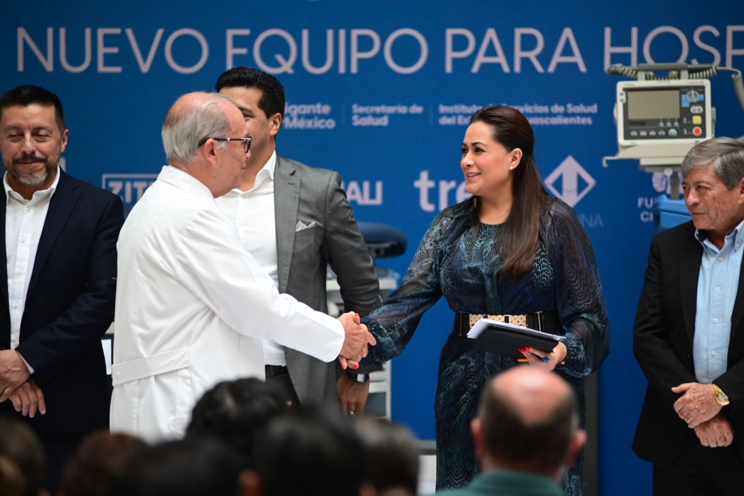 Durante la entrega de equipamiento también estuvieron presentes Leonardo Montañez Castro, presidente municipal de Aguascalientes; Luis León, presidente de la Mesa Directiva del H. Congreso del Estado; Alma Hilda Medina, presidenta de la Comisión de Salud Pública y Asistencia Social del H. Congreso del Estado; Lucero Espinoza Vázquez, presidenta municipal de Pabellón de Arteaga, y Daniel Romo Urrutia, presidente municipal de Calvillo.