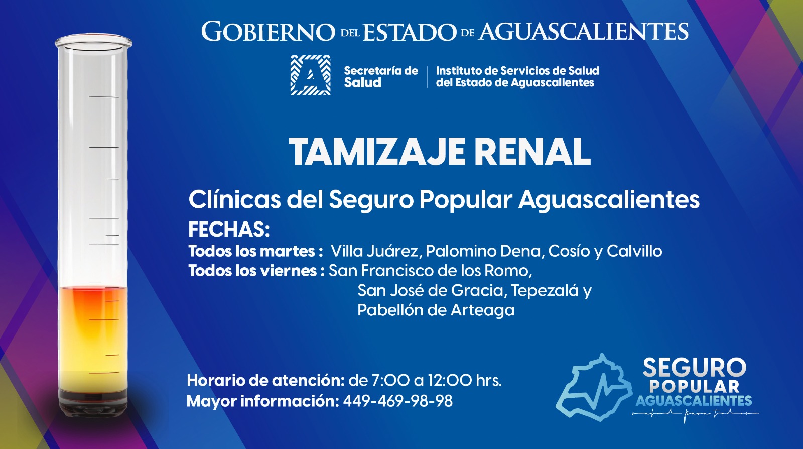Las muestras se toman todos los martes de las 7:00 a las 12:00 horas en las clínicas que se localizan en los municipios de Cosío y Calvillo, así como en la comunidad de Villa Juárez, Asientos, y en la colonia Palomino Dena, en la ciudad capital; y todos los viernes, en el mismo horario, en las clínicas de San Francisco de los Romo, San José de Gracia, Tepezalá y Pabellón de Arteaga.