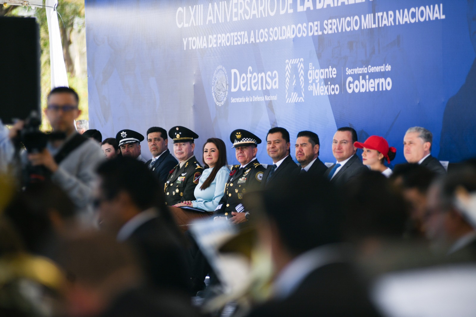 Durante el evento se realizó un enlace con Claudia Sheinbaum Pardo, presidenta de la República mexicana y comandanta suprema de las Fuerzas Armadas Mexicanas, quien tomó protesta de bandera al personal del Servicio Militar Nacional Clase 2006, Remisos y Mujeres Voluntarias que suman 37 mil 442 en 168 centros de adiestramiento en el país.