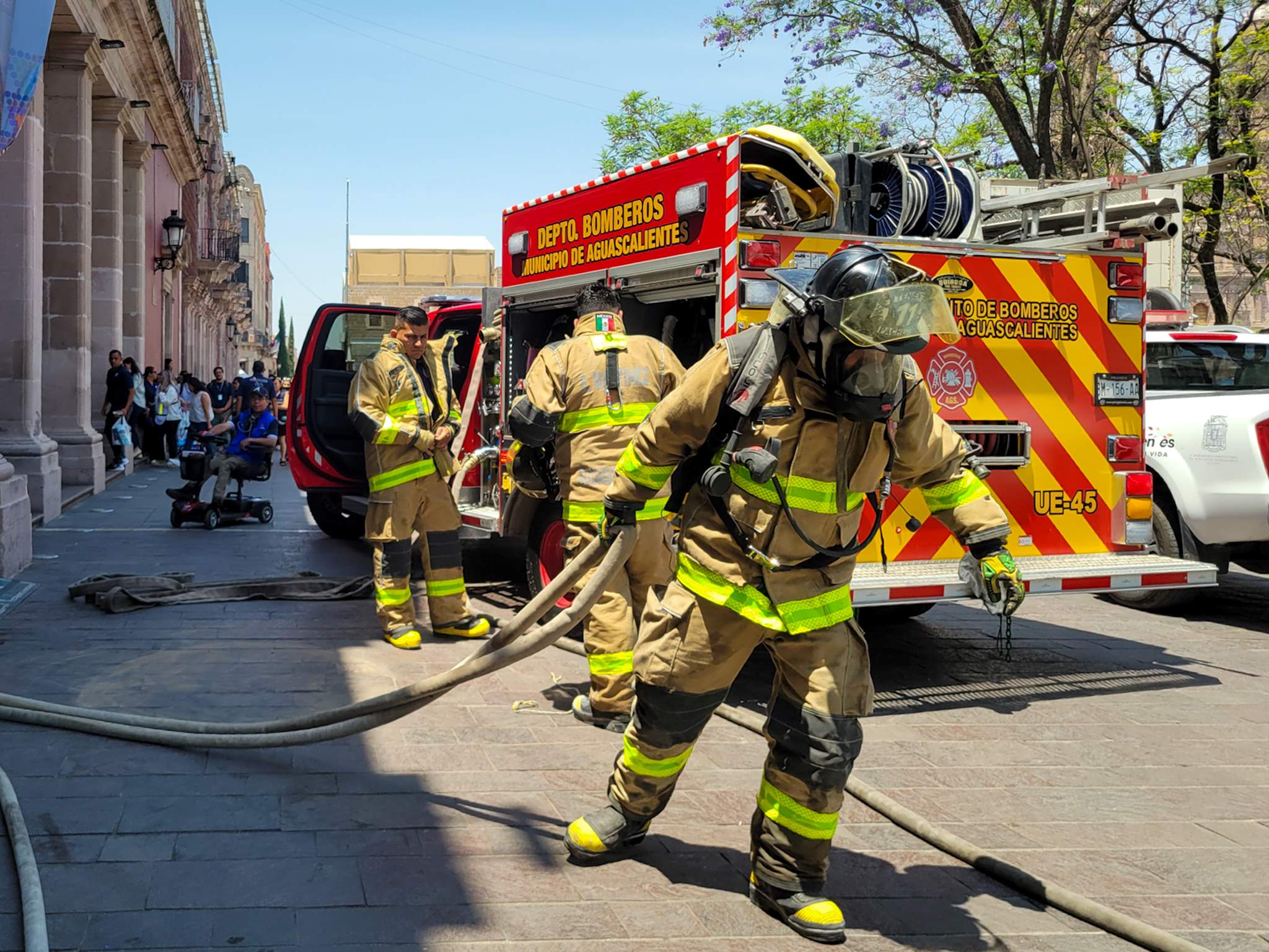 De manera inmediata y ordenada se siguieron los protocolos correspondientes y se logró evacuar en un tiempo de 4 minutos con 38 segundos de los Palacios Municipal y Estatal a 594 personas, 316 de Gobierno del Estado y 278 de Municipio de Aguascalientes, entre servidores públicos y ciudadanos que se encontraban realizando algún trámite.