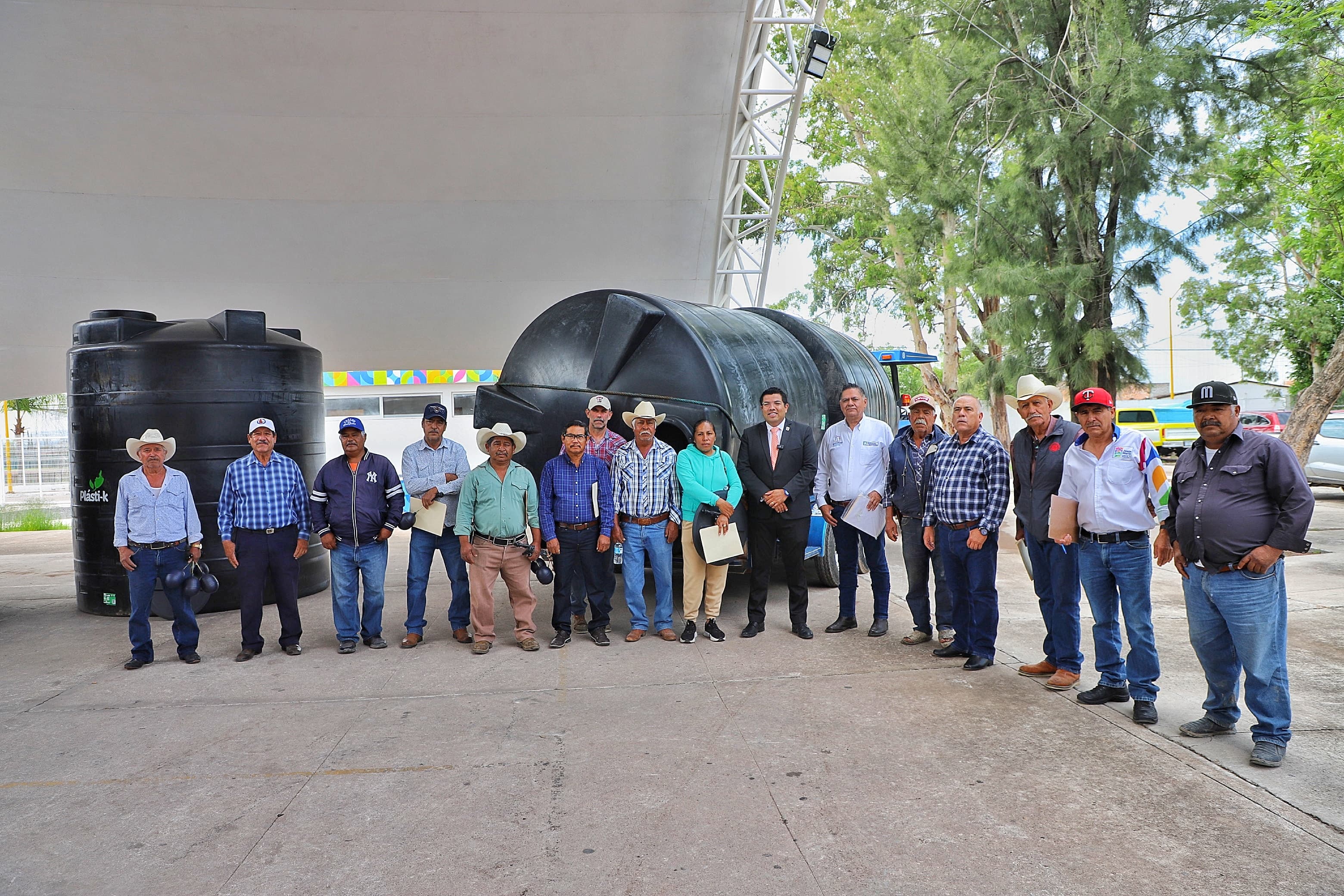 En un evento encabezado por el alcalde César Medina Cervantes, quien estuvo acompañado por Javier Villalobos de la SEDRAE, J. Guadalupe Valtierra Pérez, titular de la SADER, y por Ramiro Sandoval del área de Agricultura; se entregaron 11 cisternas, de 10,000 litros cada una, para igual número de productores de diferentes comunidades de Jesús María; como El Aurero, Valladolid y Milpillas, entre otras.