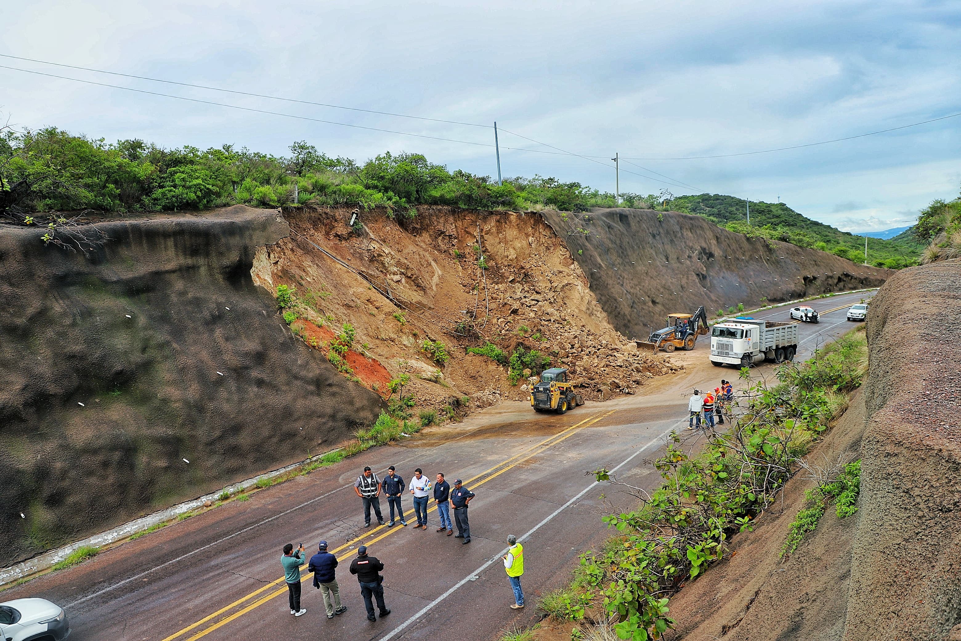 Asimismo, personal de la Secretaría de Obras Públicas municipal inició la limpieza del tramo afectado, apoyado con maquinaria y retroexcavadoras para liberar los carriles obstruidos por el material desprendido.
