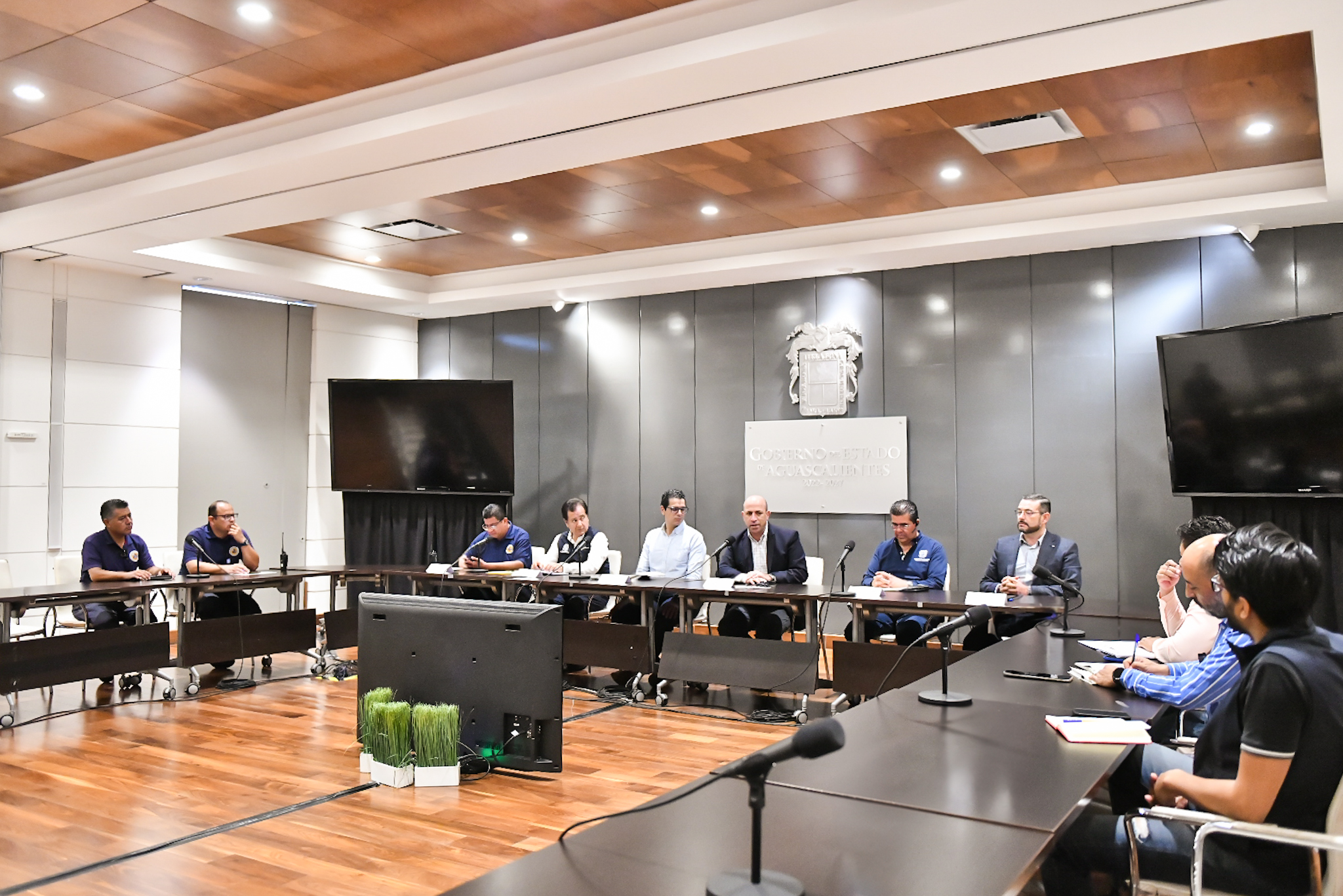 En la reunión también estuvieron presentes Jesús Eduardo Muñoz de León, coordinador estatal de Protección Civil; Luis Enrique García López, secretario del H. Ayuntamiento y director general de Gobierno del Municipio de Aguascalientes; José Gabino Vázquez Vega, coordinador de Protección Civil del Municipio de Aguascalientes, y Oscar Tristán Rodríguez Godoy, secretario de Desarrollo Urbano del municipio capital.