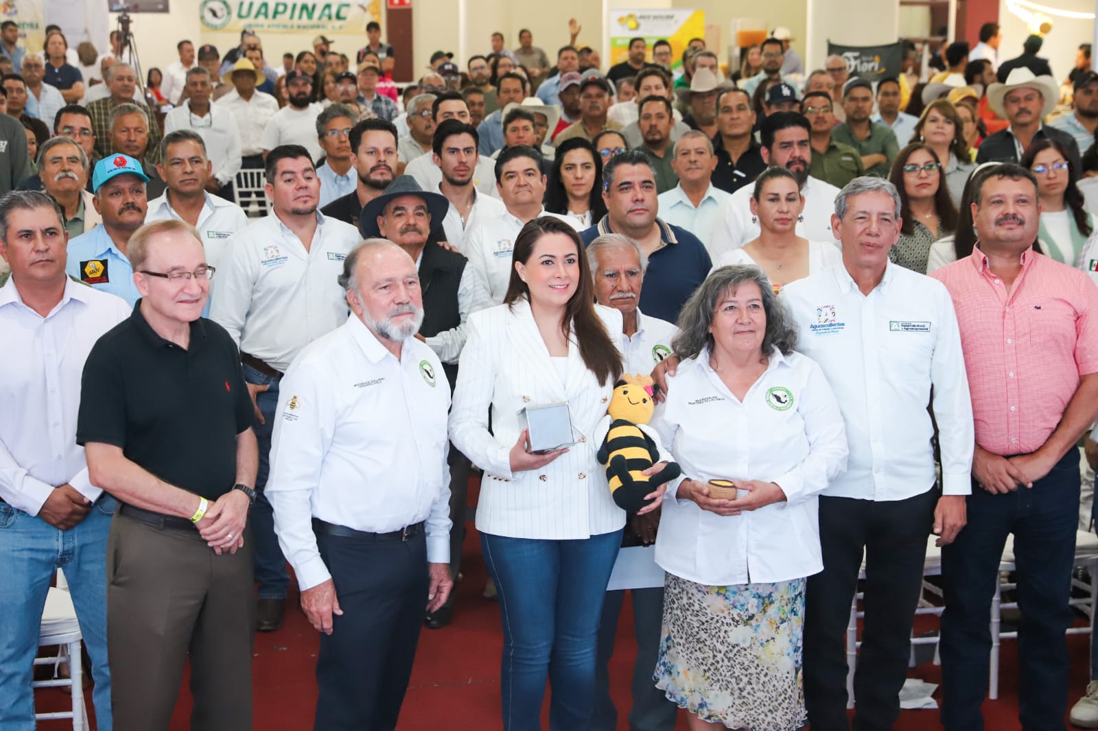 Durante el evento, la gobernadora tomó protesta a los integrantes de la nueva mesa directiva de la Unión Apícola Nacional (Uapinac). Además, recibió el nombramiento como primera socia honoraria del organismo, en reconocimiento a su labor a favor de los apicultores del estado.