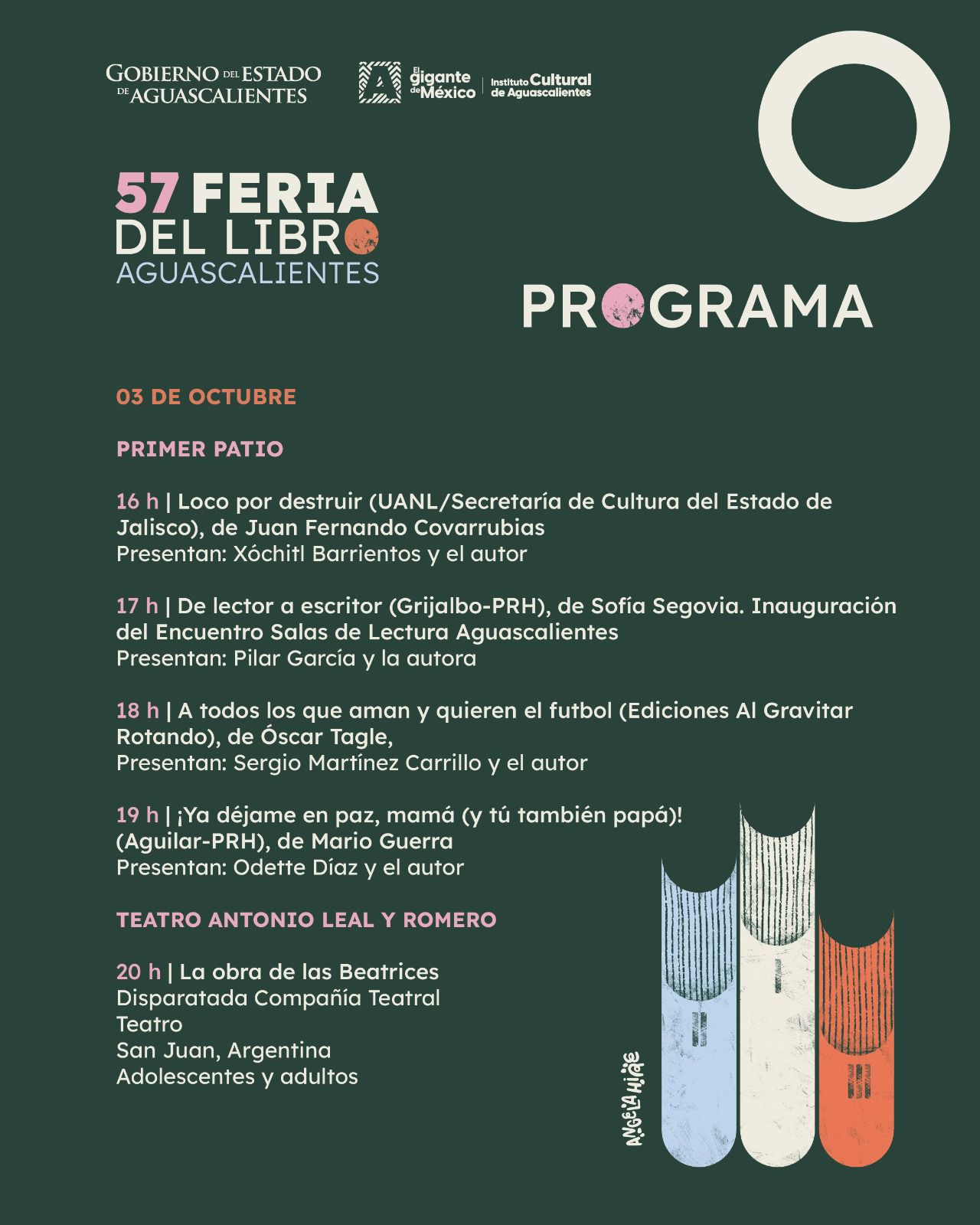Cabe destacar que las ilustraciones de la 57 Feria del Libro estuvieron a cargo de Ángela Hire, ilustradora y diseñadora de Aguascalientes, quien ha participado en proyectos editoriales nacionales e internacionales, y ha creado ilustraciones para libros, revistas, diseño de patrones, murales, entre otras cosas.