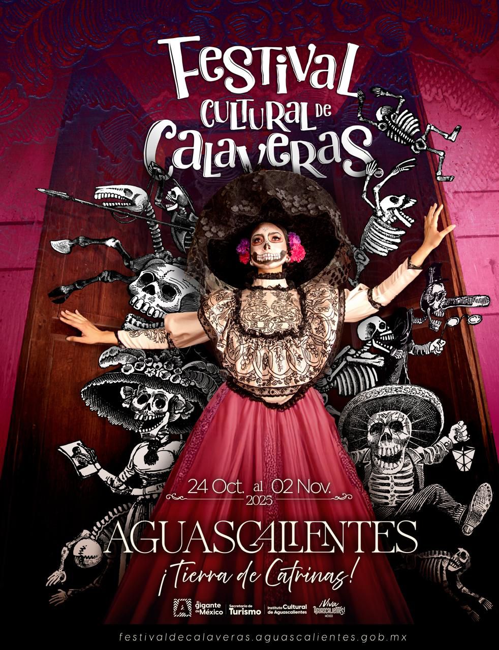 "Ya viene la Catrina, entrando fuerte y decidida en esta tierra de calaveras bien lucidas y pulidas”. Con esta frase que evoca tradición y poesía, Aguascalientes presenta el cartel oficial del XXXI Festival Cultural de Calaveras, una de las celebraciones más esperadas de México, que este 2025 se realizará del 24 de octubre al 2 de noviembre.