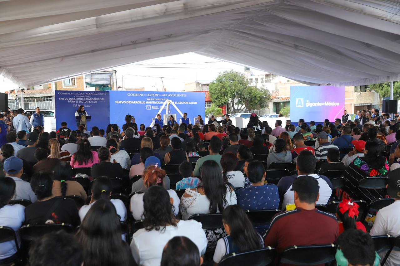 La gobernadora de Aguascalientes, Tere Jiménez, encabezó el inicio de la construcción del nuevo desarrollo habitacional para trabajadores del sector salud, en el fraccionamiento Rodolfo Landeros Gallegos al oriente de la ciudad; se construirán 130 viviendas con una inversión que supera los 72 millones de pesos.