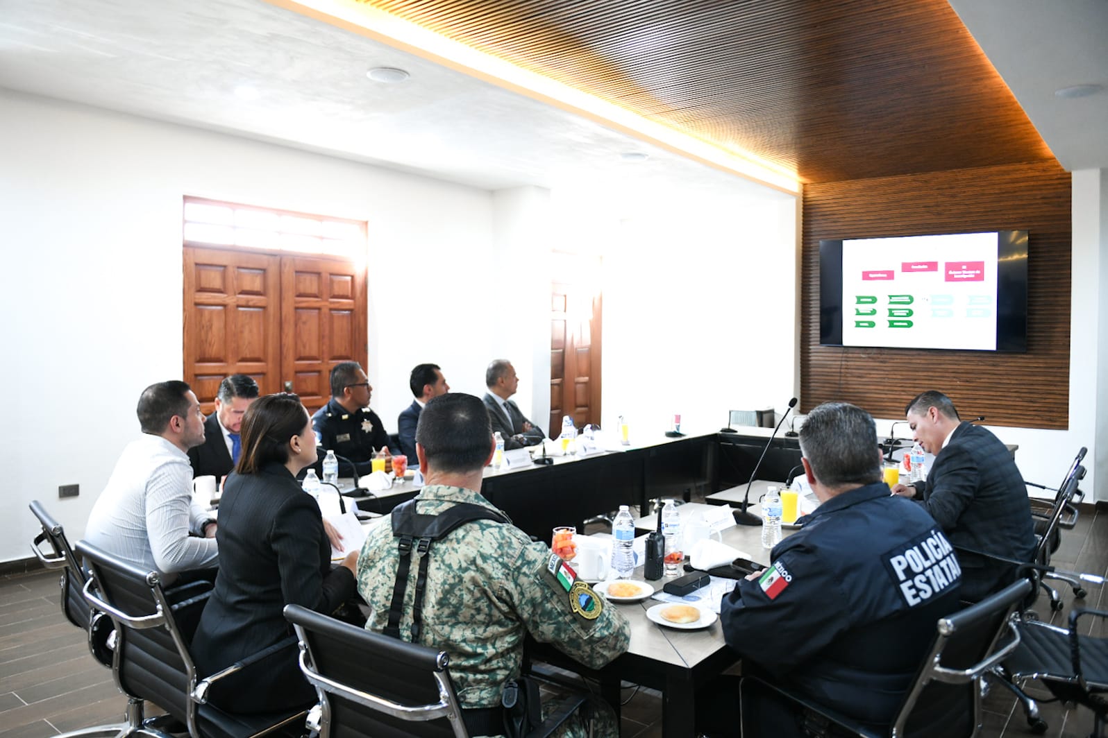 En la reunión, participaron Daniel Romo Urrutia, presidente municipal de Calvillo; José Francisco Moreno Barrera, comandante de la 14/a. Zona Militar; Alejandro Ruiz Juárez, representante de la Guardia Nacional en Aguascalientes; Antonio Martínez Romo, secretario de Seguridad Pública del Estado de Aguascalientes; José Antonio Arámbula López, secretario general de Gobierno; Felipe Blandón Hernández, secretario de Seguridad Pública y Vialidad de Calvillo; Maribel Chávez Arriaga, fiscal federal en Aguascalientes; Manuel Alonso García, fiscal general del Estado de Aguascalientes; Luis Gaistardo Serrano, jefe de Estación del CNI en Aguascalientes, y Fernando Alberto Alférez Alcázar, secretario técnico de la Mesa Estatal de Seguridad para la Construcción de la Paz en Aguascalientes.