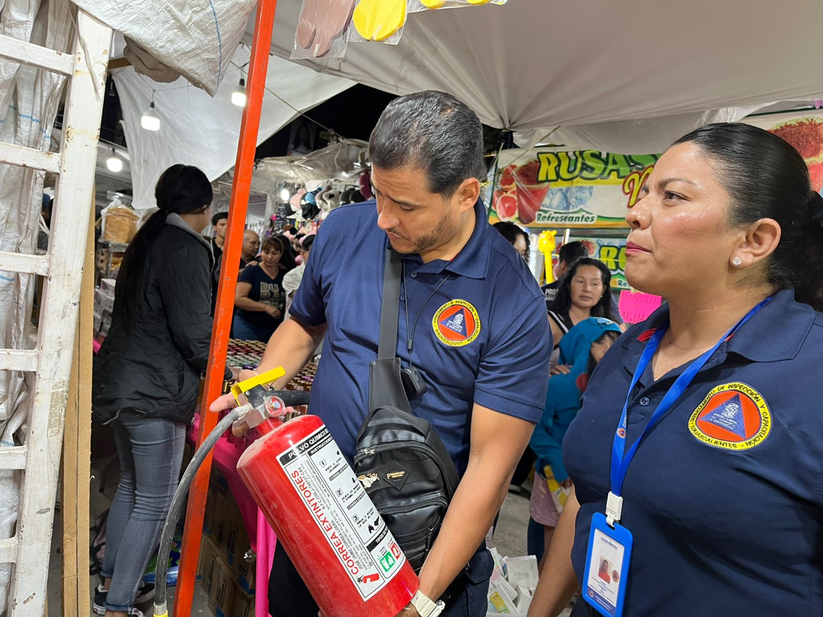 El titular de la dependencia, José Gabino Vázquez Vega, informó que personal del área de Protección Civil, llevaran a cabo acciones de vigilancia en la zona de puestos, para revisar las instalaciones del L.P., a fin de prevenir cualquier tipo de riesgos.