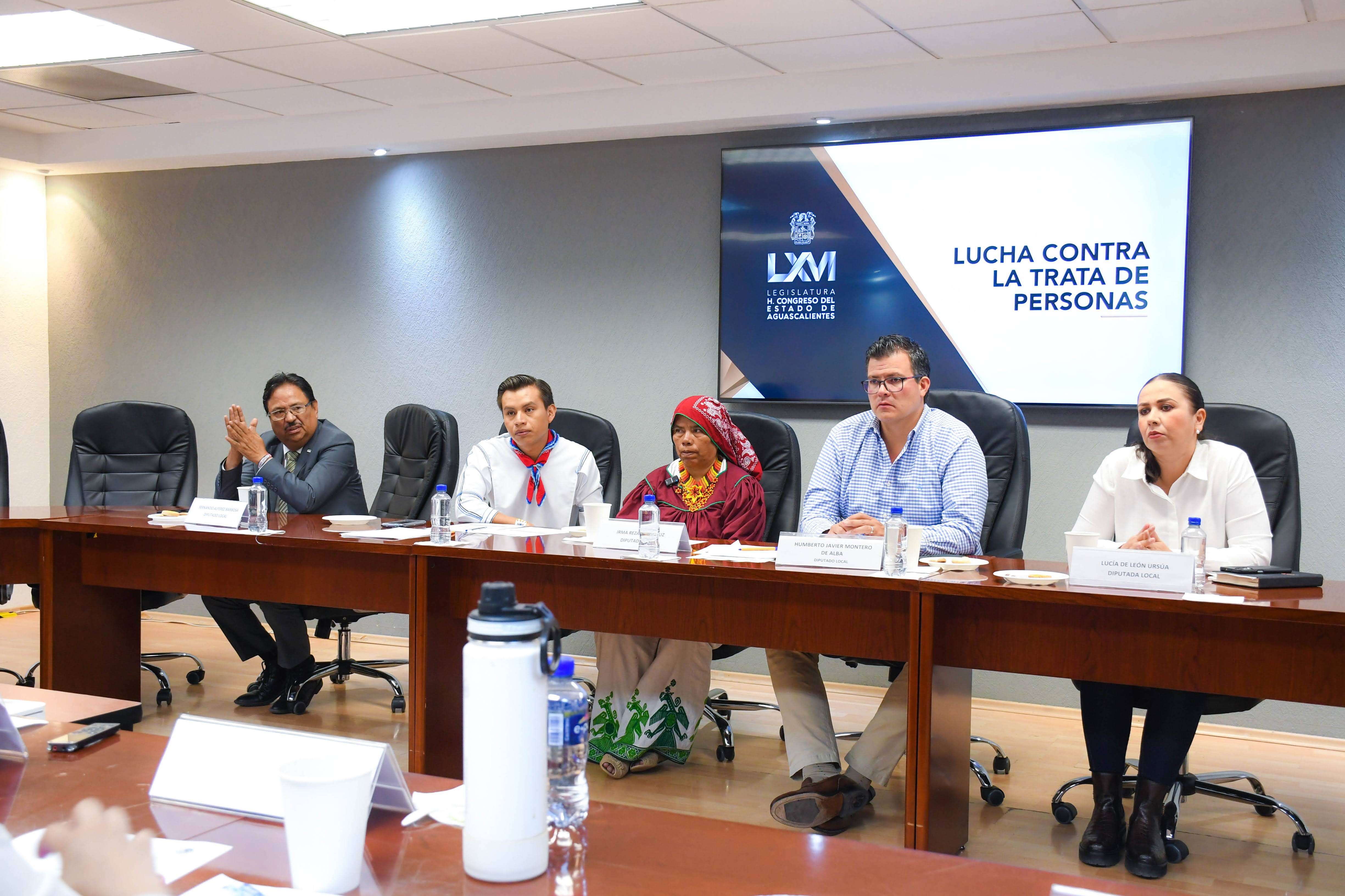 Integrantes de la Comisión de Lucha Contra la Trata de Personas de la LXVI Legislatura del Congreso de Aguascalientes, que preside la diputada Irma Reza de la Cruz, sostuvieron una reunión de trabajo con la titular de la Comisión Estatal de Búsqueda de Personas, Violeta Sabás Días de León, con el objetivo de fortalecer la colaboración interinstitucional en materia de búsqueda y localización de personas desaparecidas en la entidad.