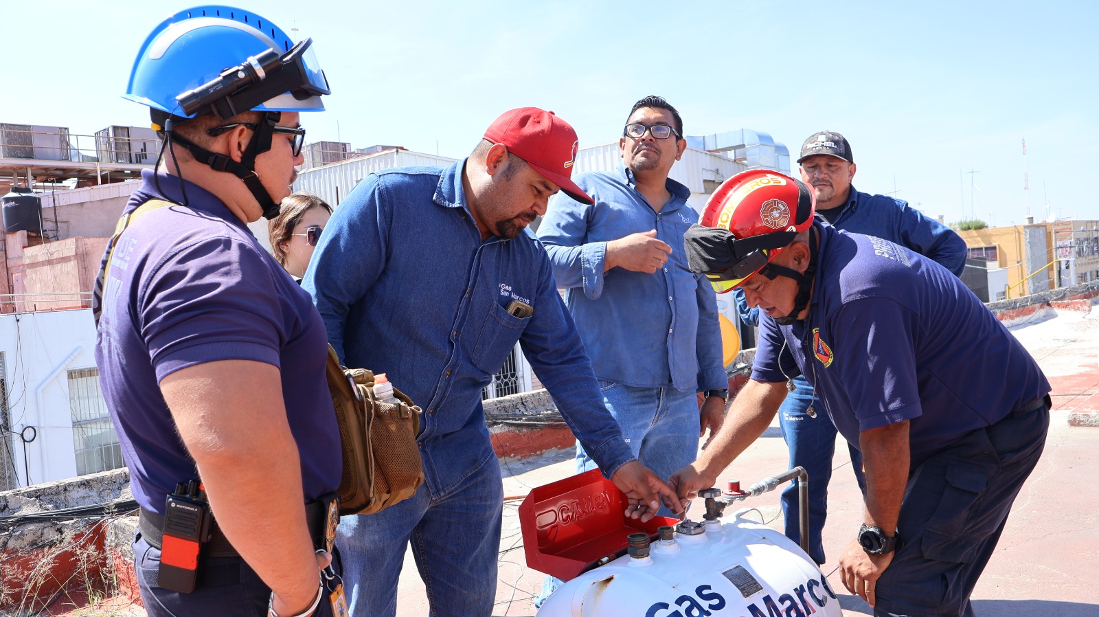 Detalló que, en coordinación con personal de la gasera San Marcos, corroboraron las medidas de seguridad de los tanques estacionarios del Mercado Terán que abastecen a los puestos fijos; indicó que se revisaron las válvulas y el estado físico de los tanques, para descartar posibles fugas.