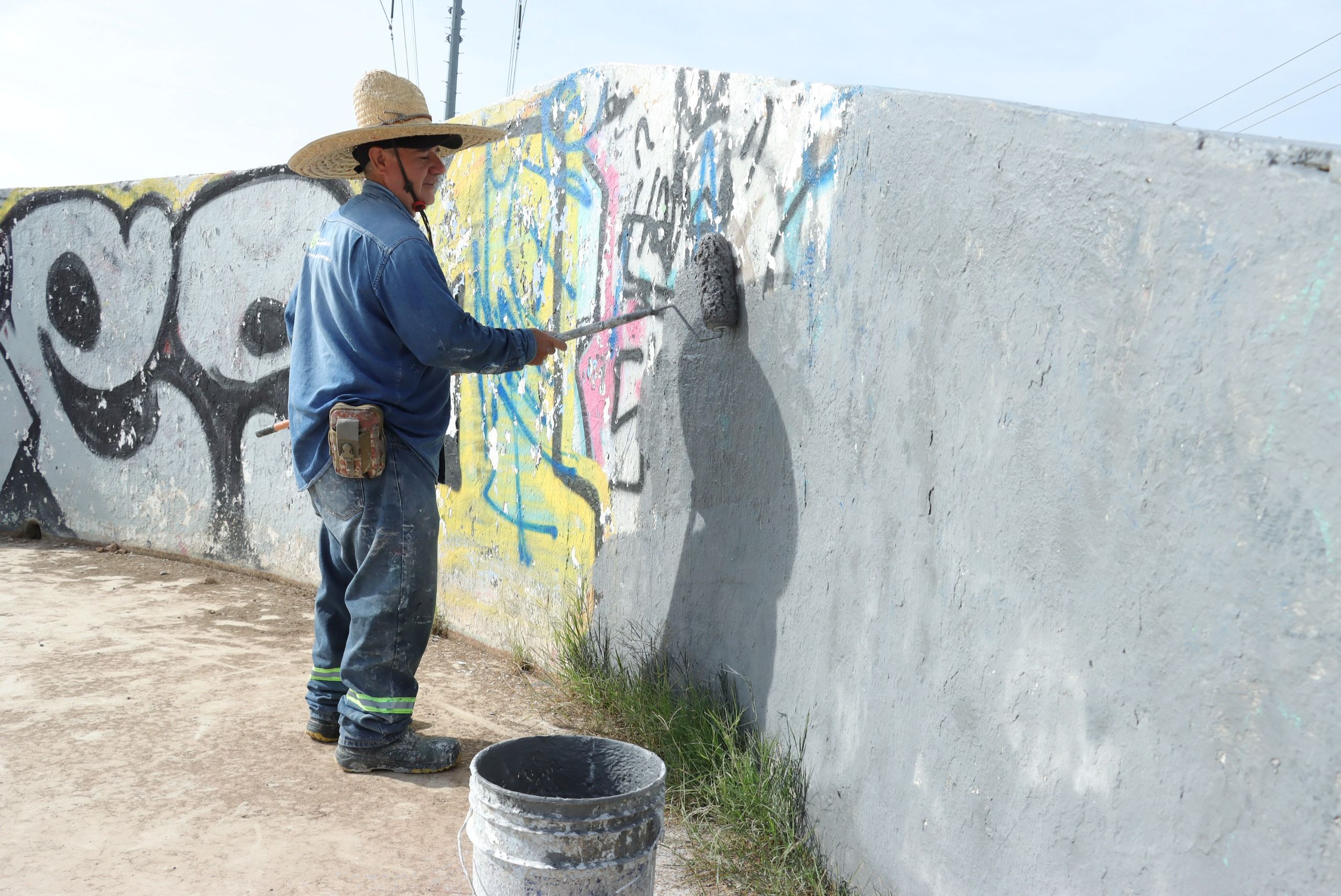 Estas labores incluyen lavado y aplicación de pintura vinílica en muros, bardas, mobiliario urbano, fachadas de domicilios particulares y pasos peatonales.