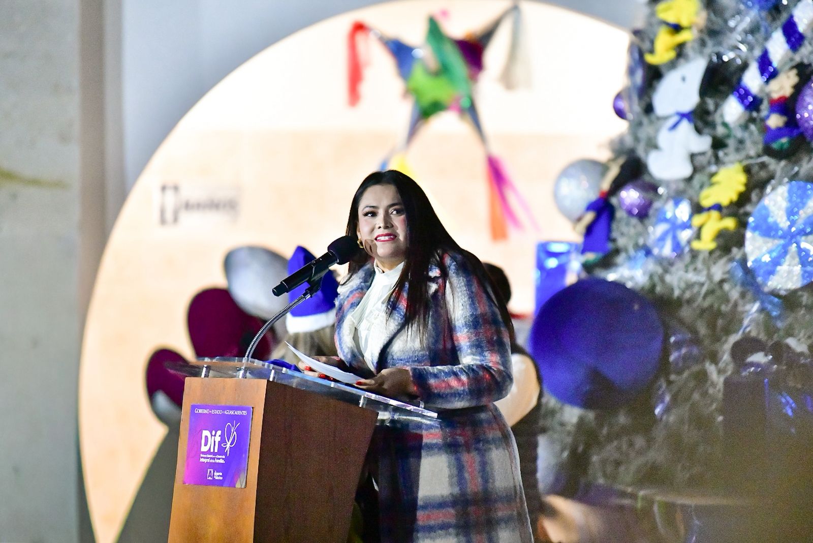Teniendo como marco un cielo vestido de estrellas y un ambiente cargado de ilusión, la gobernadora de Aguascalientes, Tere Jiménez, junto a Aurora Jiménez Esquivel, primera voluntaria y presidenta del Sistema Estatal para el Desarrollo Integral de la Familia (DIF), encendieron el tradicional Árbol Navideño del DIF Estatal, dando inicio a una de las noches más luminosas y entrañables de la temporada.