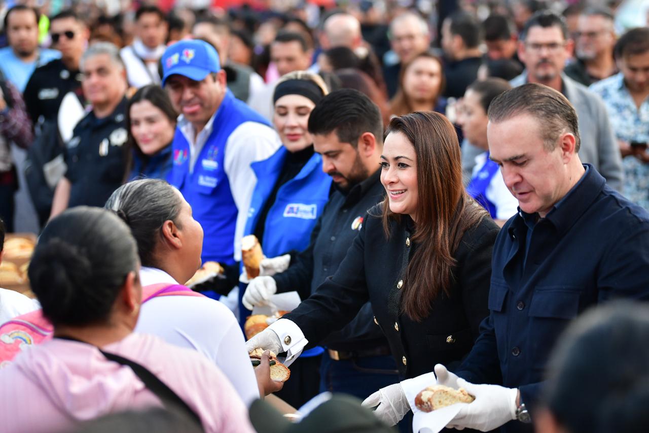 Entre sonrisas, convivencia y unión familiar, la gobernadora Tere Jiménez y la presidenta del Sistema DIF Estatal, Aurora Jiménez Esquivel, compartieron con miles de familias la tradicional “Gigante Rosca de Reyes 2026” en Plaza Patria, que este año sorprendió con una extensión de 2 mil 200 metros lineales, 100 más que el año anterior.