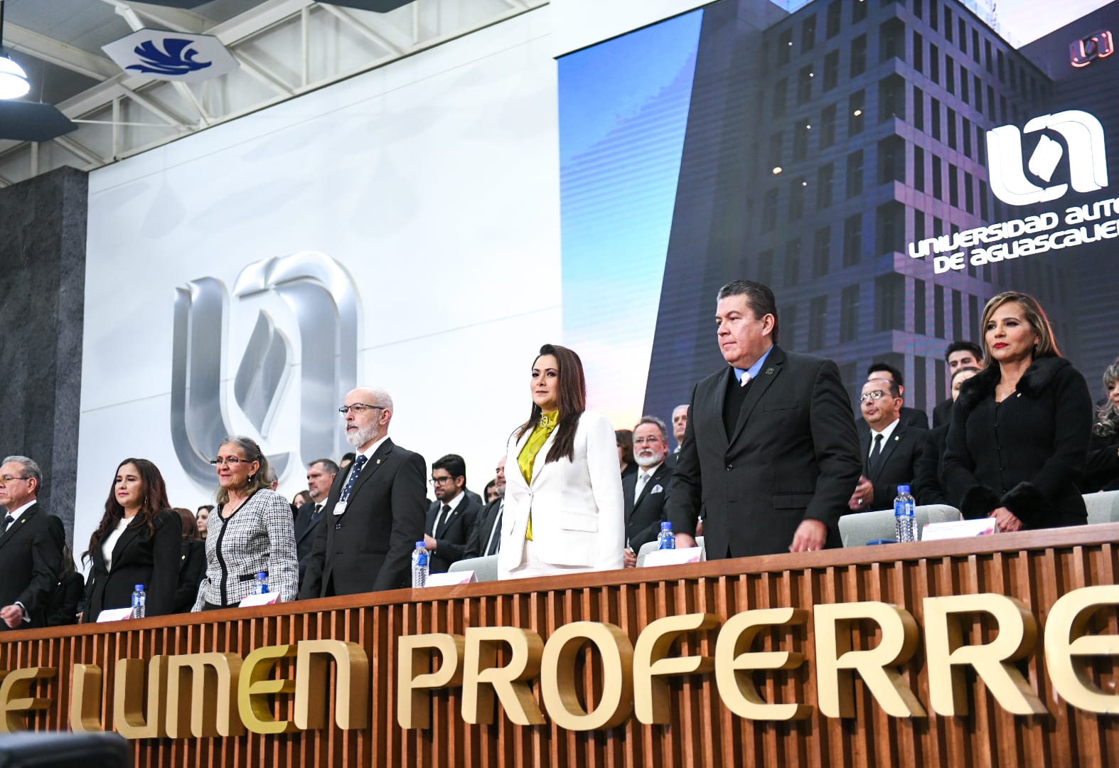 La gobernadora de Aguascalientes, Tere Jiménez, asistió a la toma de protesta del nuevo rector de la Universidad Autónoma de Aguascalientes (UAA), Juan Carlos Arredondo Hernández, a quien deseó éxito en su nueva encomienda y pidió seguir trabajando de la mano para que la Máxima Casa de Estudios se consolide como una de las mejores instituciones de educación superior del país.