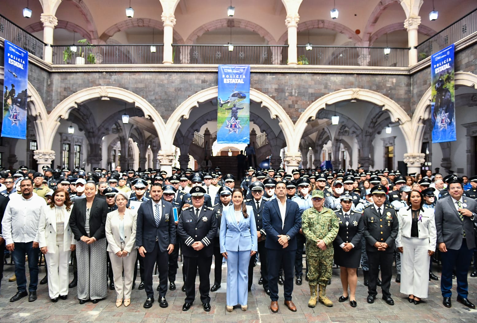 En el evento que se realizó en el segundo patio del Palacio de Gobierno, también estuvieron presentes Álvaro Javier Juárez Vázquez, comandante de la 14/a. Zona Militar; Rey David Quiroz Pavón, jefe de Coordinación Policial Estatal de la Guardia Nacional; Manuel Alonso García, fiscal general del Estado; Karla Martorell Moya, coordinadora de la Mesa Ciudadana de Seguridad y Justicia de Aguascalientes; Gonzalo Pérez Zúñiga, secretario de Seguridad Pública del Municipio de Aguascalientes; Óscar López, director operativo de la SSPE; Salvador Ortiz, jefe de Estado Mayor de la SSPE; Yasmani López, comandante de la Policía de Carreteras de la SSPE; Arturo Martínez, director de Movilidad de la SSPE; Lucero Espinoza Vázquez, presidenta municipal de Pabellón de Arteaga; Laura Araceli González Reyes, presidenta municipal de San José de Gracia; Margarita Gallegos Soto, presidenta municipal de San Francisco de los Romo; Francisco Javier Domínguez López, presidente municipal de Cosío, y César Medina, presidente municipal de Jesús María.