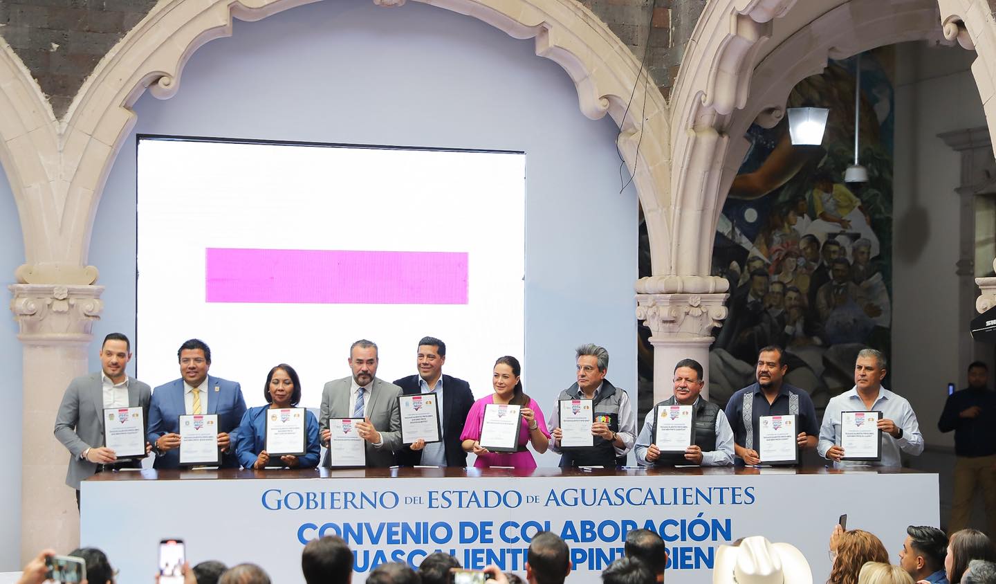 La gobernadora de Aguascalientes, Tere Jiménez, encabezó la presentación de “Aguascalientes ¡Pinta Bien!”, el programa de mejoramiento de imagen urbana más grande en la historia del estado, mediante el cual se pintarán 10 mil fachadas en distintos municipios, con el objetivo de embellecer las ciudades y dignificar el entorno de miles de familias.