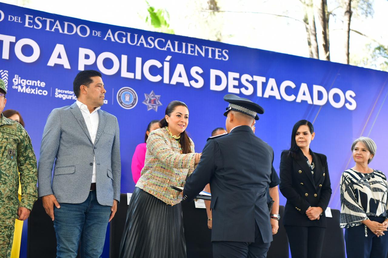 La gobernadora de Aguascalientes, Tere Jiménez, entregó incentivos a policías estatales y municipales, a quienes reconoció por su labor fundamental para mantener la paz y la tranquilidad en la entidad.