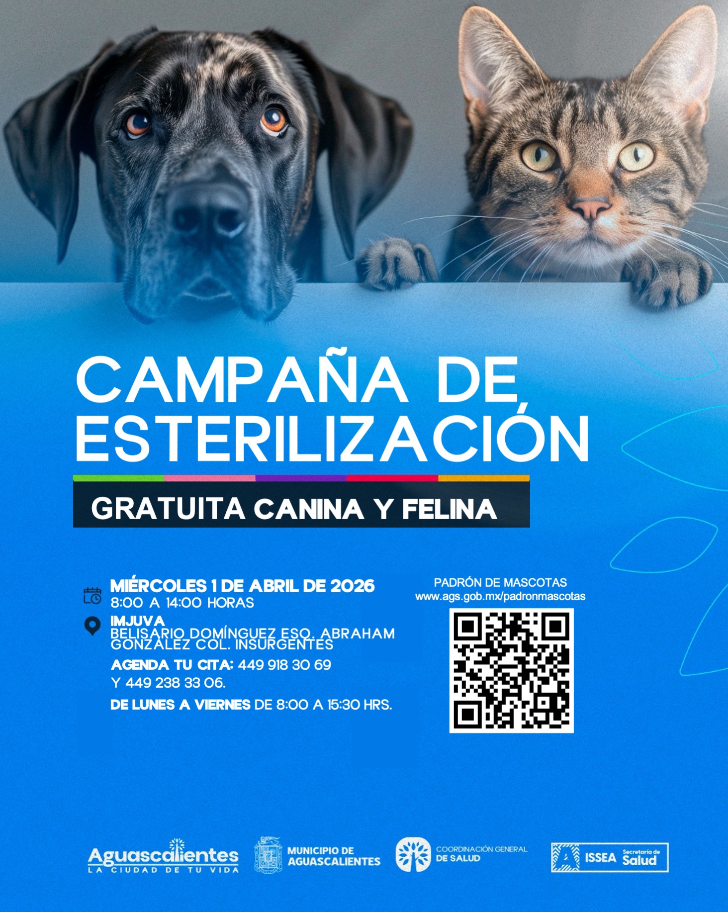 María Teresa Rendón Esquivel, coordinadora general de Salud informa que se realizará una nueva fecha de esterilización en conjunto con la Secretaría de Salud del Estado de Aguascalientes (ISSEA), que se llevará a cabo en las instalaciones del Instituto Municipal de la Juventud de Aguascalientes (IMJUVA).