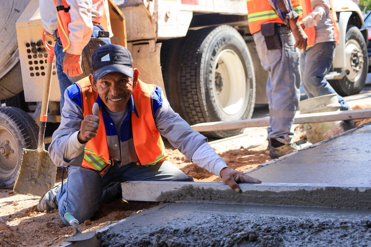 Actualmente, se lleva a cabo la construcción de banquetas con un ancho de 2 metros, lo que permite que los peatones tengan acceso a una movilidad incluyente y segura.