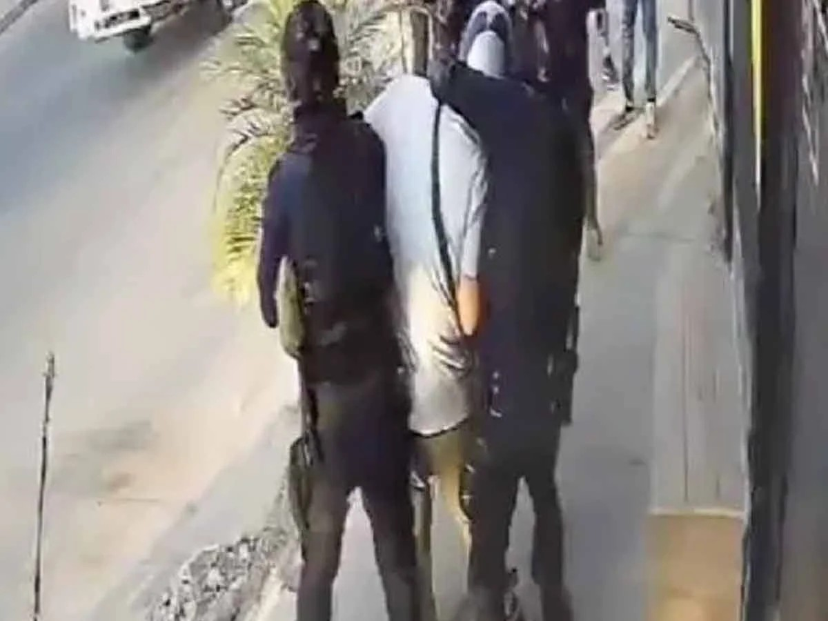 Sin embargo, momentos después, un hombre con casco se acerca a la escena. Al intentar retirarse, la patrulla se detiene y uno de los policías, al bajar, tropieza. De inmediato, él y otro oficial se dirigen al hombre del casco. En cuestión de segundos, lo sujetan de las manos y el cuello, intensificando el forcejeo.