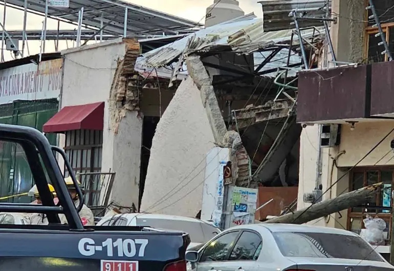 La mañana de este miércoles se registró un derrumbe en una finca que era utilizada como restaurante, ubicada en la colonia La Perla, sobre la calle Salvador Quevedo y Zubieta, entre Toluca y Jarauta.