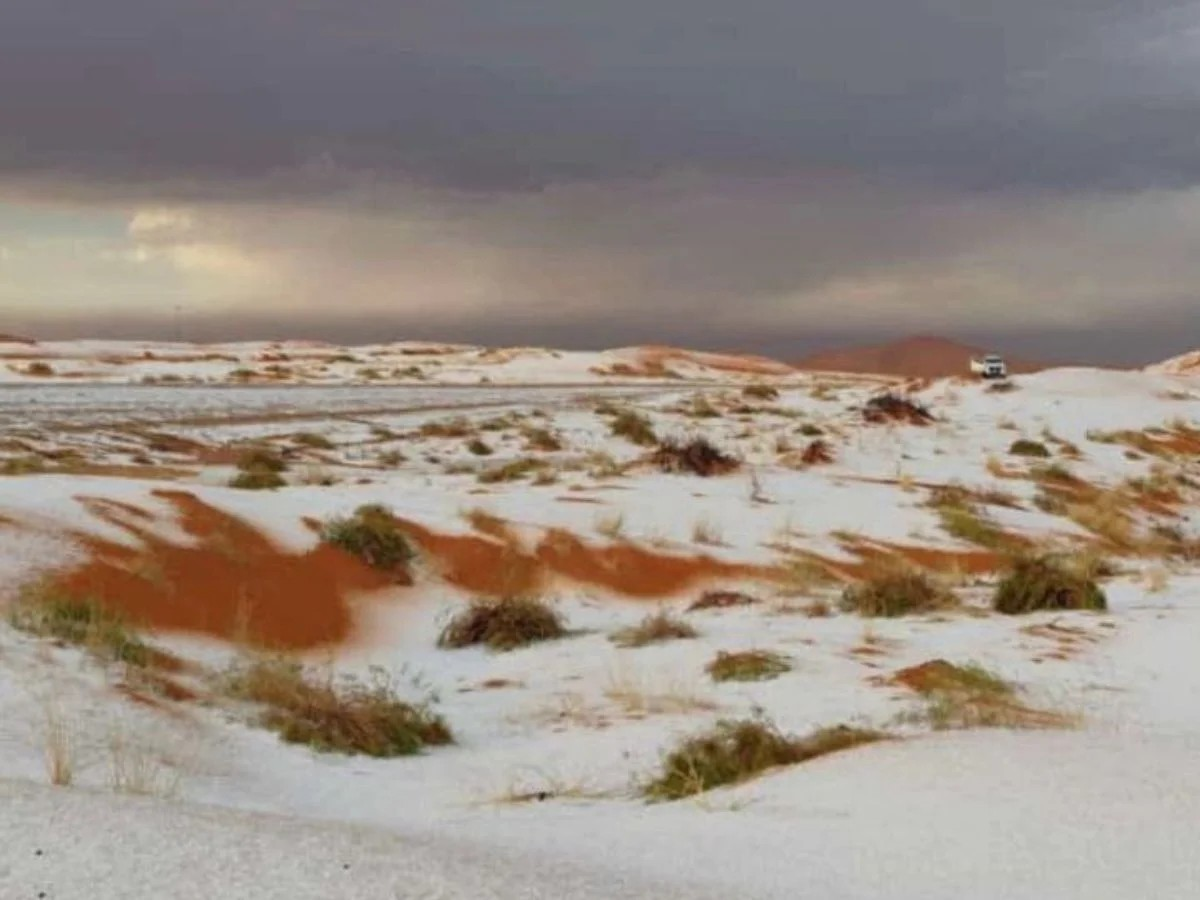 Por primera vez en la historia, el desierto de Arabia Saudita, específicamente en la región de Al Jawf, se cubrió de nieve, un fenómeno que generó debate sobre los efectos inmediatos del cambio climático.