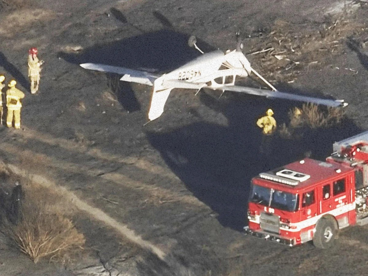 “El avión está al revés, no hay fuego, y ambos ocupantes lograron salir por su cuenta con heridas aparentemente menores”, señaló un comunicado del LAFD.