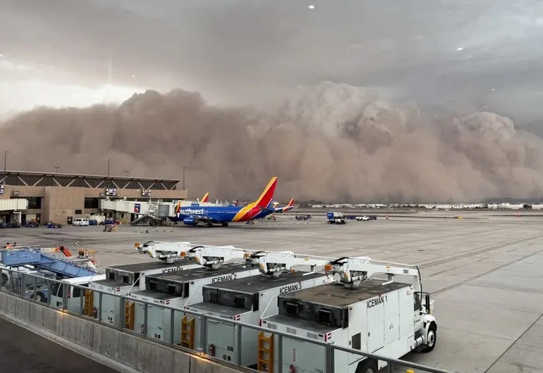 Explicaciones técnicas del fenómeno abundan: un haboob es una tormenta de polvo impulsada por los vientos de una tormenta eléctrica o frente atmosférico que arrastra partículas del suelo en regiones áridas, formando una muralla de arena de varios kilómetros de ancho y altura Wikipedia. En el caso de Phoenix, las ráfagas alcanzaron hasta 70 mph (~113 km/h), sobre todo en cercanías del aeropuerto.