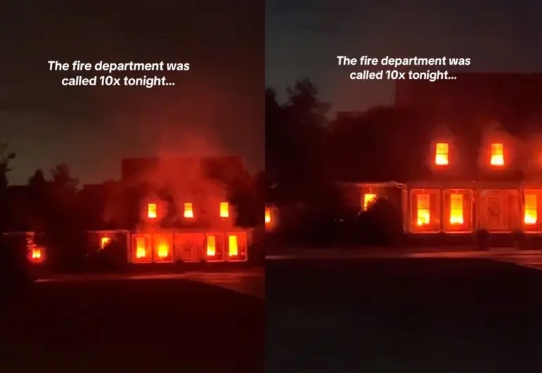 A través de la cuenta de TikTok @tylerandmichaelade, se compartió un video que rápidamente se volvió viral. En él, se puede ver cómo una vivienda de dos pisos parece estar envuelta en llamas, gracias a un impresionante juego de luces y efectos especiales que simulan un incendio desde el interior.
