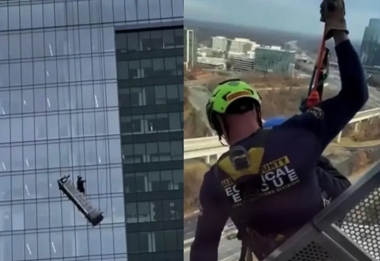 Mientras tanto, las imágenes del operativo —que se han difundido ampliamente en redes locales— han generado reconocimiento hacia los rescatistas y han reavivado la conversación sobre la seguridad laboral para quienes trabajan suspendidos en alturas extremas