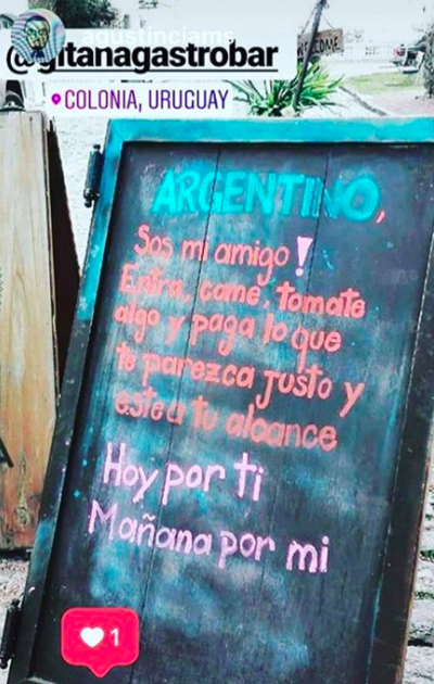 Un restaurante ubicado en la ciudad uruguaya de Colonia de Sacramento, lanzó una iniciativa para ayudar a la economía de los argentinos, quienes han padecido el encarecimiento desmedido del dólar.