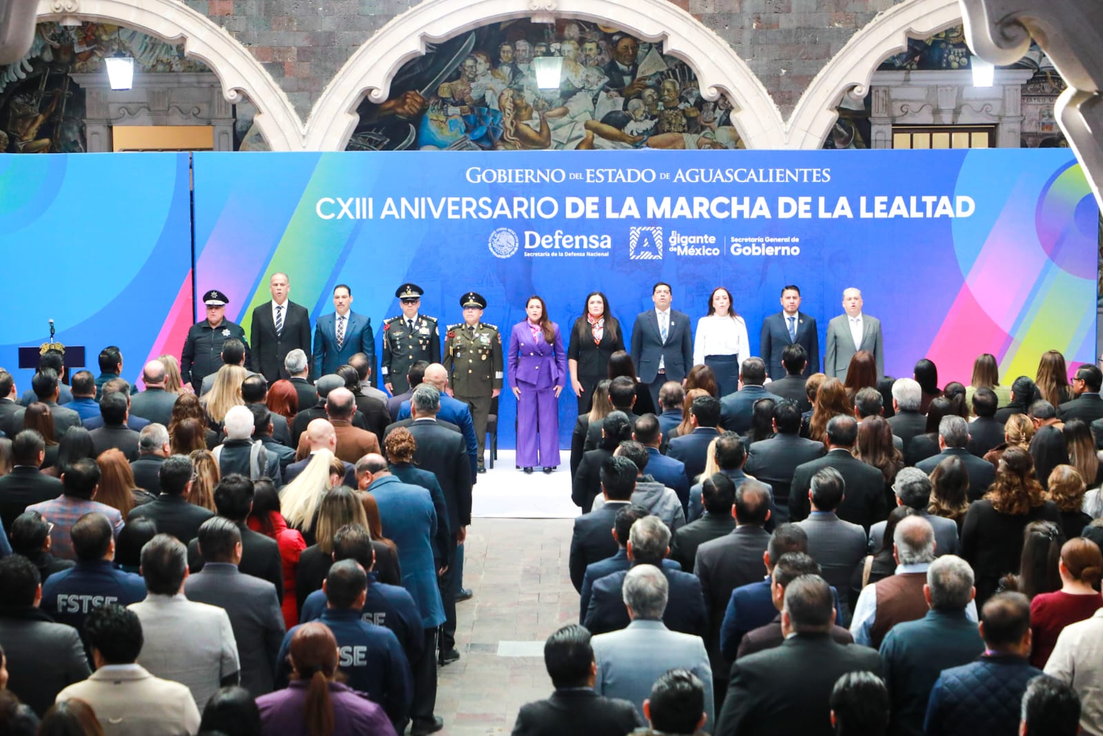 En la ceremonia protocolaria, también estuvieron presentes Aurora Jiménez Esquivel, presidenta y primera voluntaria del DIF Estatal; Leonardo Montañez Castro, presidente municipal de Aguascalientes; Juan Antonio Martín del Campo, senador de la República por Aguascalientes; Álvaro Javier Juárez Vázquez, comandante de la 14/a. Zona Militar; Isaac Aarón Jesús García, coordinador de la Guardia Nacional en Aguascalientes; María José Ocampo Vázquez, magistrada presidenta del Supremo Tribunal de Justicia del Estado; Juan Antonio Martínez Romo, secretario de Seguridad Pública del Estado; Manuel Alonso García, fiscal general del Estado, y Luis Enrique Gutiérrez Reynoso, director general del Instituto de Educación de Aguascalientes.