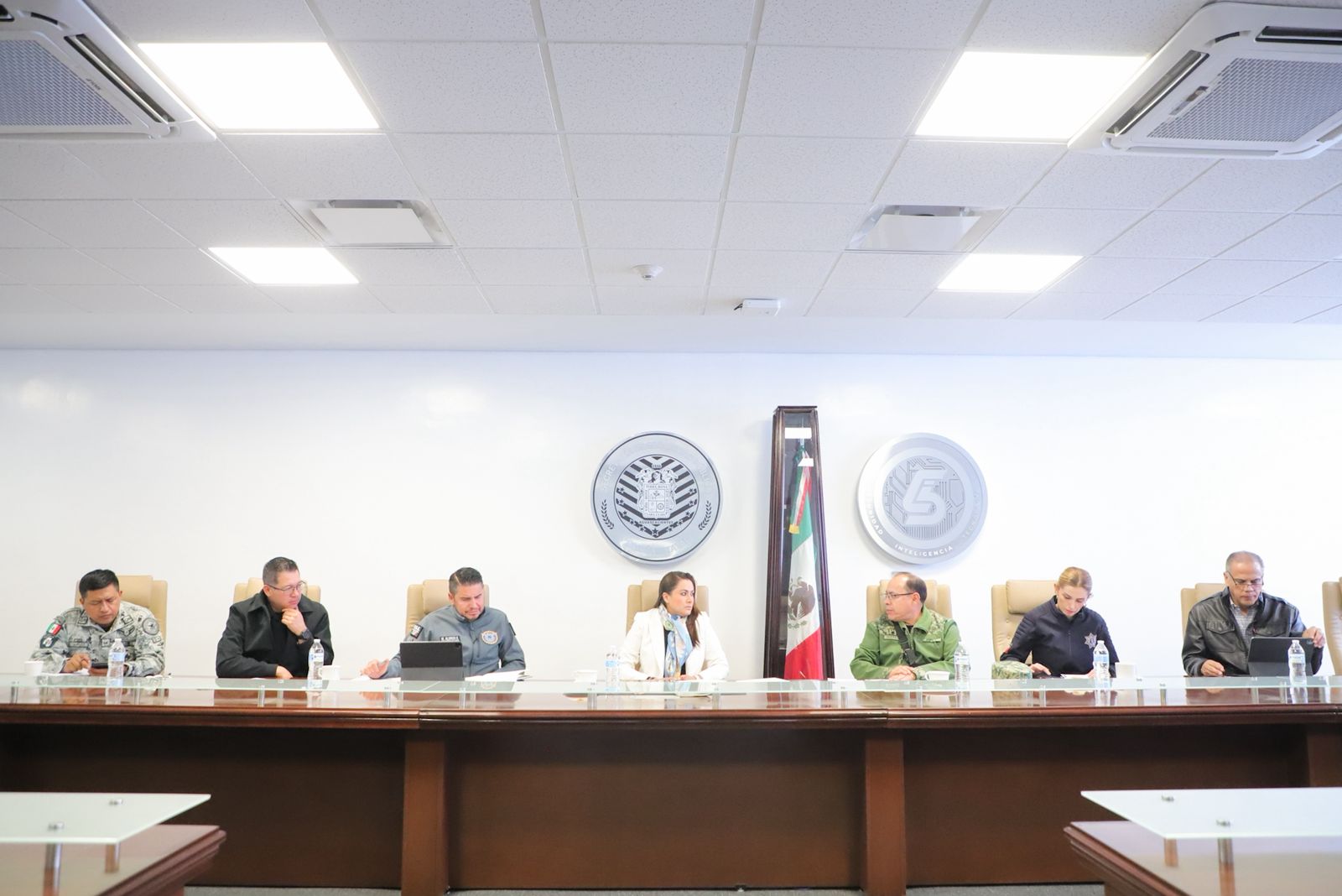 En la reunión participan Álvaro Javier Juárez Vázquez, comandante de la 14/a. Zona Militar; Rey David Quiroz Pavón, representante de la Guardia Nacional; Antonio Arámbula López, secretario general de Gobierno; Manuel Alonso García, fiscal general del Estado; Michelle Olmos, directora general del C5i; Salvador Ortiz Esparza, Jefe de Estado Mayor de la Secretaría de Seguridad Pública del Estado; y Gonzalo Pérez Zúñiga, secretario de Seguridad Pública del Municipio de Aguascalientes.