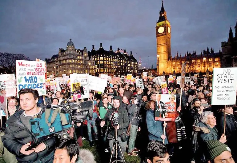 Ciudadanos británicos convocaron a una manifestación contra la visita del presidente de Estados Unidos, Donald Trump, a su país.
